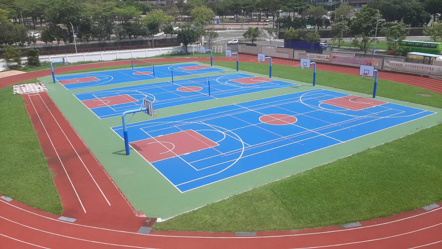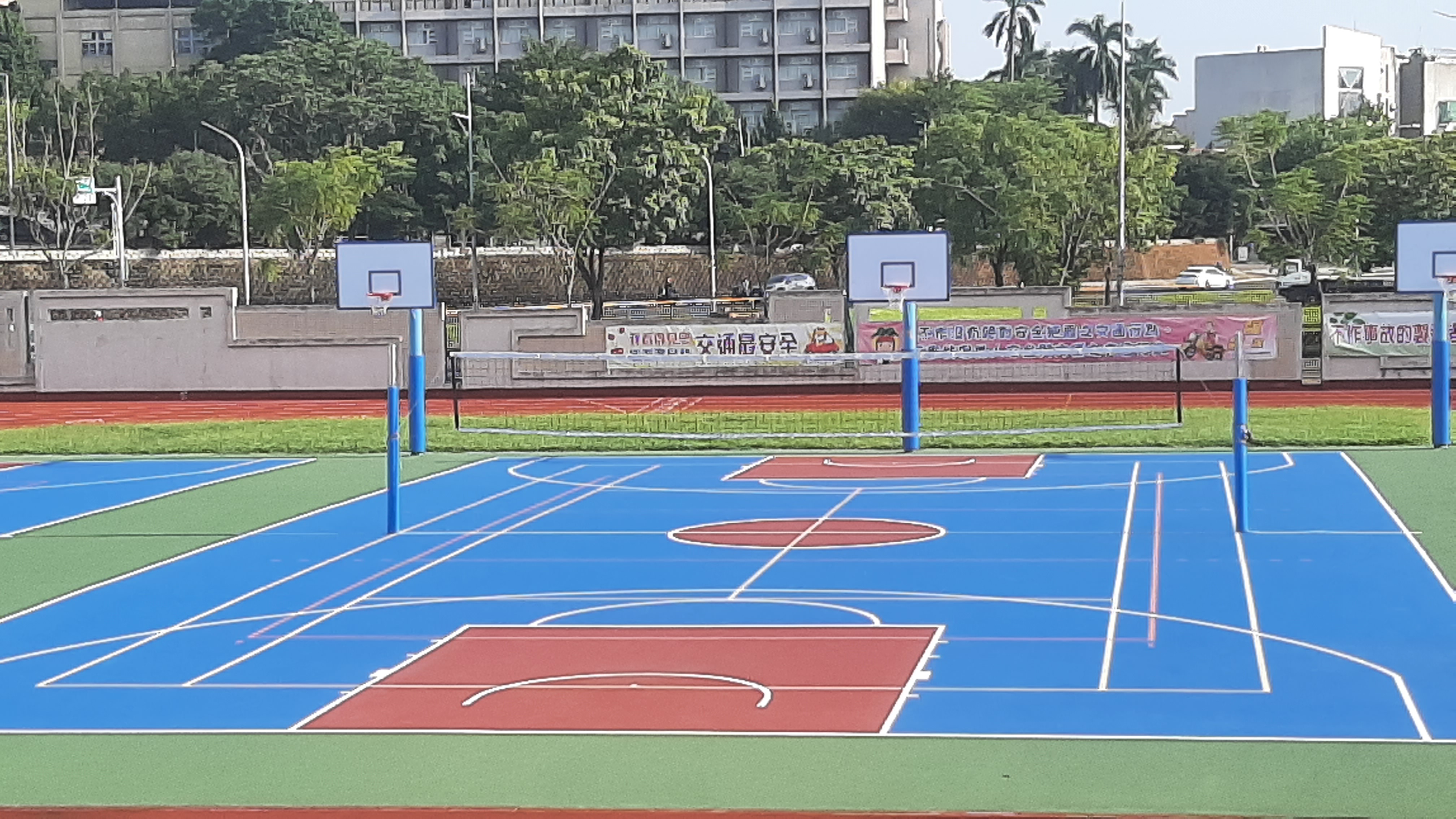 為本校師生活動或體育課之使用場地,包含有籃球場、排球場、跳遠、跑道等場地。